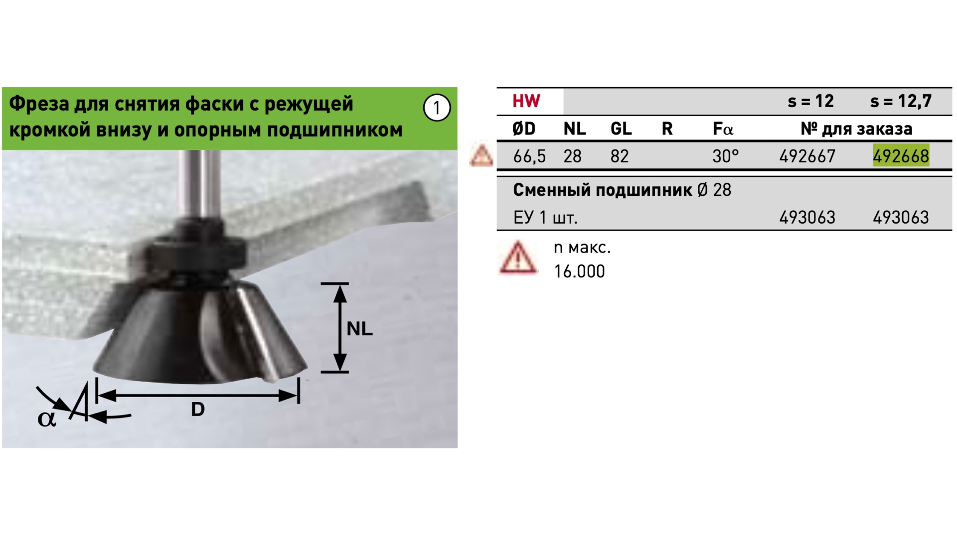 Фреза для профилирования фасок HW с хвостовиком 12,7 мм FESTOOL HW D66,5/30 ss S12,7