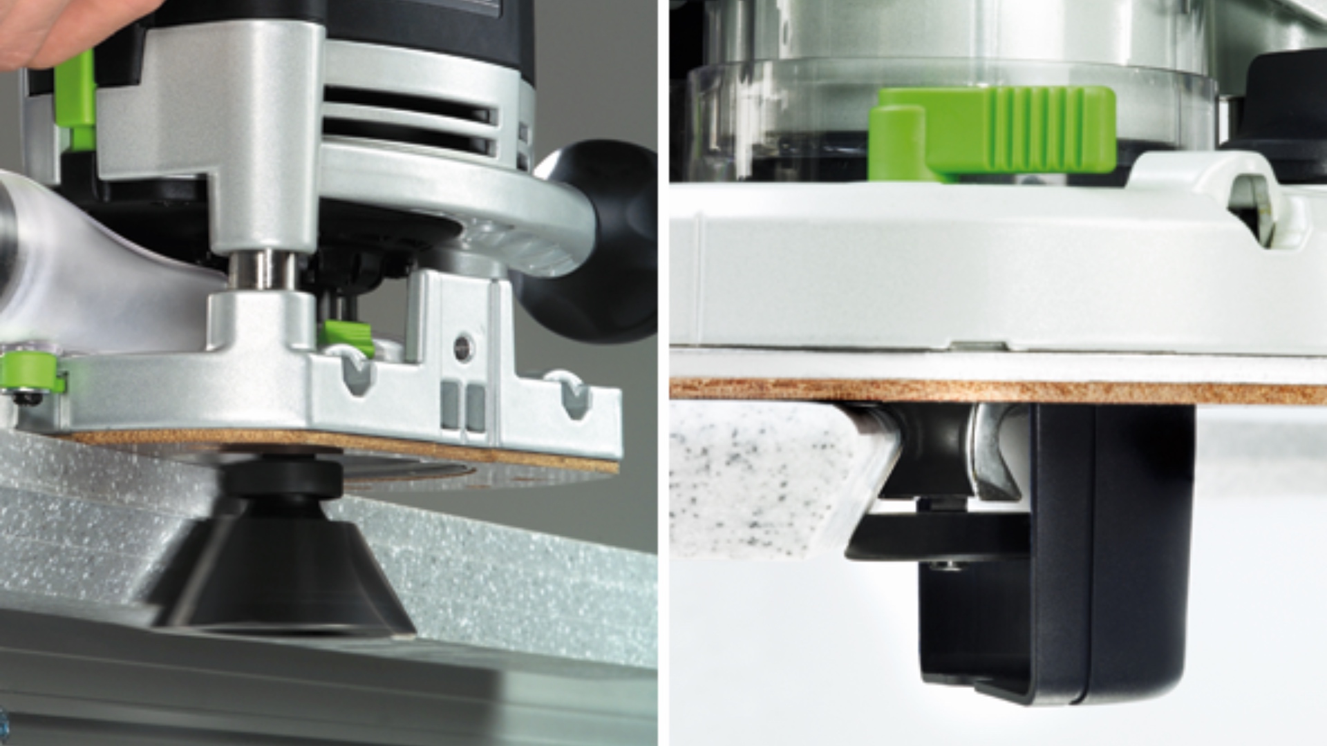 С помощью фрезы для снятия фасок с режущей кромкой внизу можно производить профилирование прямых и изогнутых столешниц барной стойки, не переворачивая столешницу
