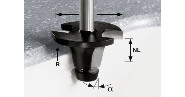Фреза для снятия фасок со скругляющей кромкой HW с хвостовиком 12 мм FESTOOL HW R12,7/25/12° ss S12 ..