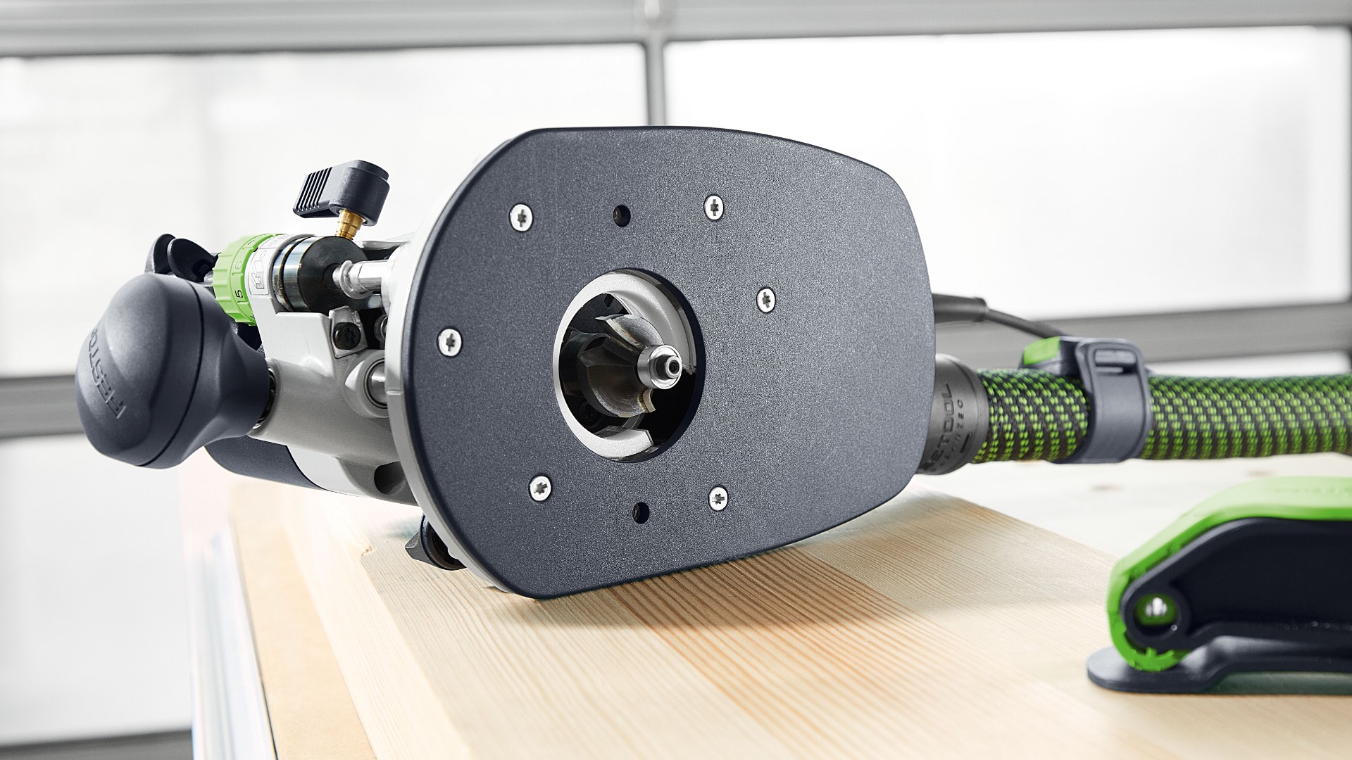 При фрезеровании близко к краю только половина опорной пластины фрезера стоит на заготовке. Подошва служит в качестве безопасной и надёжной опоры фрезера.