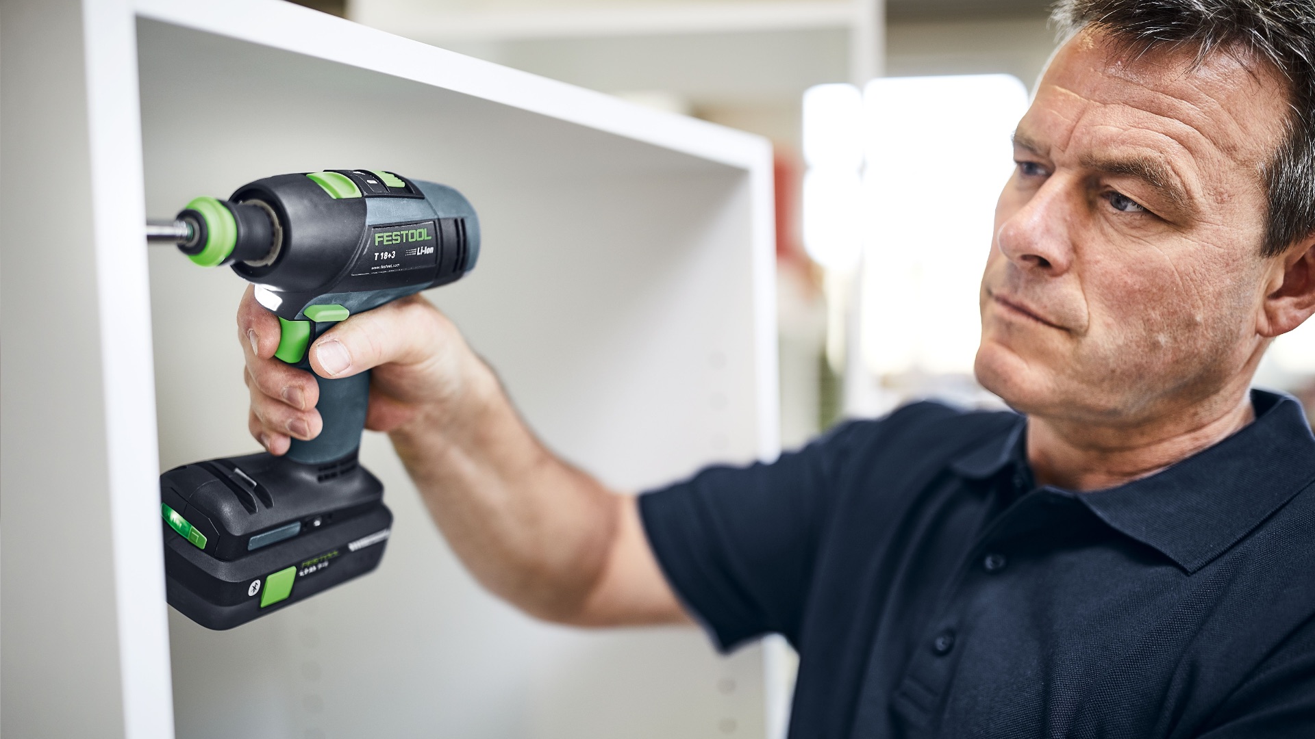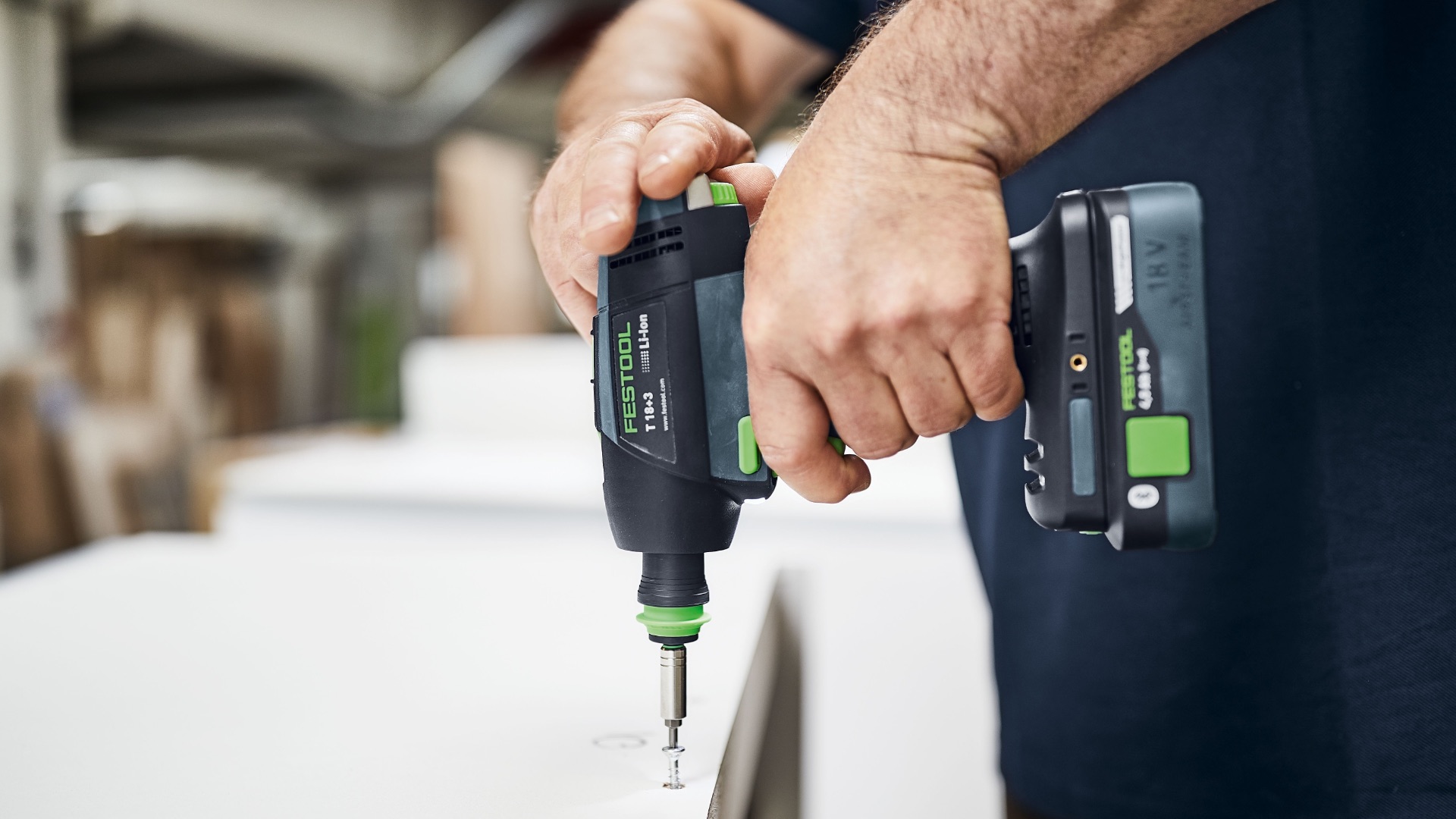 Максимальная гибкость при сверлении и завинчивании: электронная регулировка крутящего момента, система быстрой смены инструмента CENTROTEC, угловая и эксцентриковая насадка, а также ограничитель глубины. Тандем аккумулятора Li-HighPower с бесщёточным электродвигателем EC-TEC делает дрель-шуруповёрт T 18+3 лёгкой, долговечной и выносливой. Инструмент и аккумулятор застрахованы от любых неприятностей благодаря пакету сервисных услуг Festool. Выпускается в двух вариантах корпуса: уникальной T-образной формы или — по личному предпочтению мастера — C-образной формы, как например C 18.